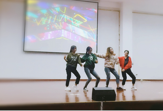 暑假中四位学姐就确定了节目歌曲,开学后大家就积极准备了起来,但很快就出现了问题,由于选的歌节奏过快,排练好几次发现跳不出设想的感觉。于是,大家在经过反复斟酌后选定迎新节目的舞蹈音乐为《Party rock》。初期练习时大家跟着舞蹈视频练习,学不好的地方,大家就互相教学。在前期的精心准备下,学姐在此次彩排中带来了近乎完美的表现。