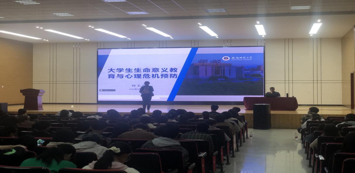 4月14日上午,学校大学生心理健康发展中心邀请安徽师范大学何元庆教授来校,开展以“大学生生命意义教育与心理危机预防”为主题的专题心理讲座。讲座由学生处大学生心理健康发展中心夏雨朦主任主持,参加此次讲座的包括40余位学生工作者,各年级心理委员、校心理健康志愿者以及自愿报名的同学共计500余名。