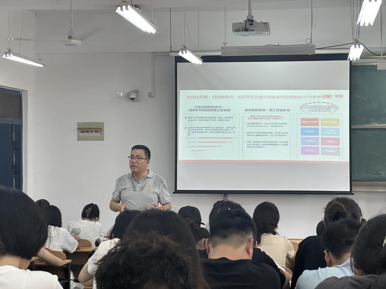 在快速迭代的科技浪潮中,探索未来趋势、把握时代脉搏已成为社会各界关注的焦点,9月19日下午,经济与管理学院在西教109开展AI+人力资源管理数智化创新实践讲座。本次讲座由新道科技总监、桂林电子科技大学商学院客座教授的陈国峰教授主讲。