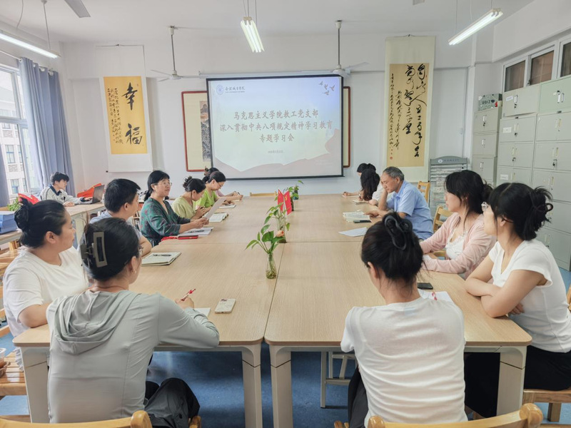 5月22日下午,马克思主义学院教工党支部在实验楼北511召开深入贯彻中央八项规定精神学习教育专题学习会。会议由支部书记程海苗主持,学院全体党员教师参加。