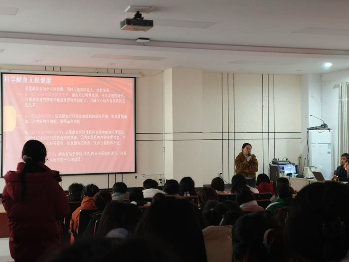 此讲座由合肥市中心血站巢湖分站副站长施妍医师为我们进行无偿献血知识科普会议,会议分别从血液生理、安全献血、献血者权益、鲜血参与这四个方面为大家详细介绍献血的重要性,并且会议结合了大量现实案例、图片为大家更加详细的介绍献血流程、献血前注意事项以及献血后反应和注意事项。在互动环节,同学们踊跃提问,就献血前后的饮食、作息调整,不同血型的差异及用血需求等方面提出疑问,主讲人耐心细致地作答,让大家更加详细、全面的了解献血相关的知识。活动现场还准备了奖品随机发放给大家,大家也积极地参与到活动之中,现场氛围热烈而活跃。