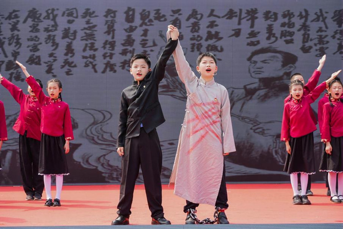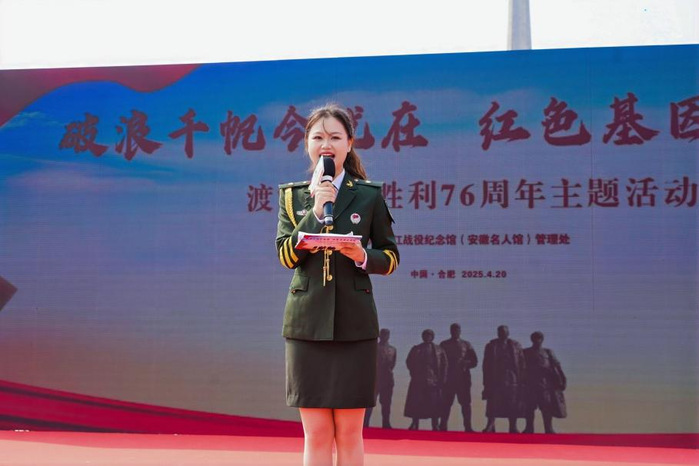 活动在庄严肃穆的渡江战役历史影像中拉开帷幕来自万慈小学、合肥市师范附属小学的师生共同参与情景朗诵环节,以革命烈士家书、诗词为载体,用铿锵之声再现军民团结、奋勇争先的渡江精神。在《我送亲人过大江》原创情景剧中,学生们以沉浸式表演还原军民携手突破长江天险的壮烈场景,陈毅将军春水方生濡须口,大军从此过江东的诗句激荡全场。
